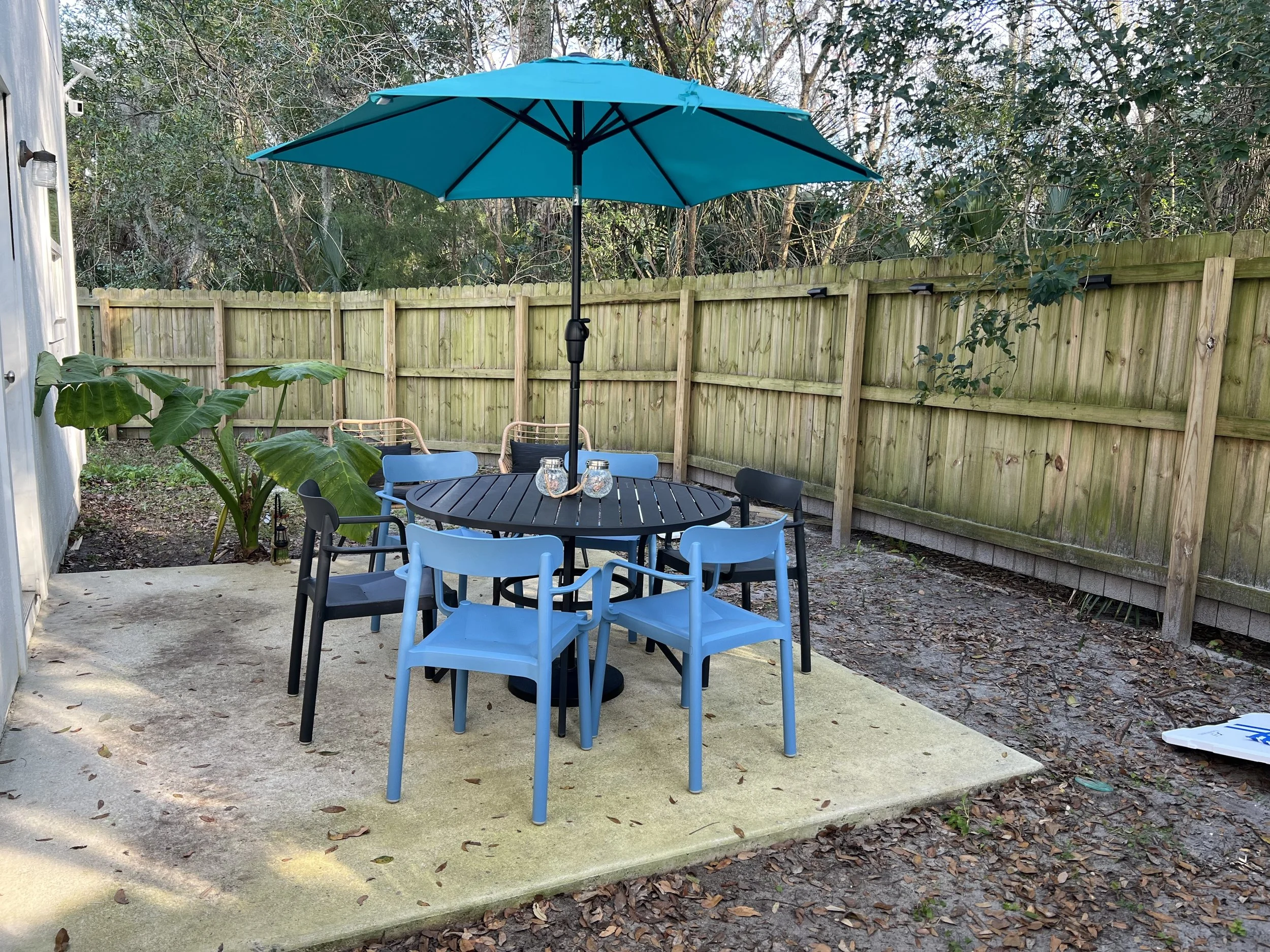 Enjoy your St. Augustine stay in our open-concept 1,541 sq foot two-level, 3-bedroom 2.5 bath home with a private fully fenced-in back-yard suitable for outdoor dining and relaxation. 1.4 miles to downtown and sights. Great for Nights of Lights. The downstairs features a large open living and dining room with a dining table with seating for six and a large peninsula.